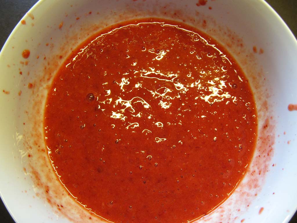 Hæld massen i springformen og glat overfladen ud med en dejskraber.