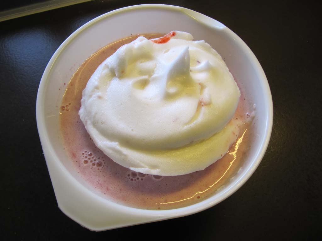 Kom piskefløden i en skål sammen med sukkeret. Pisk kraftigt indtil fløden bliver stiv (flødeskum). Kom flødeskummet i en sprøjteposen og luk enden af posen. Kom posen i køleskabet indtil den er godt kold.