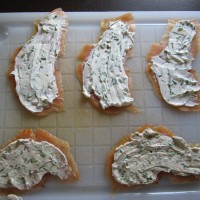Kommes i ovnen i ca. 15min. Når kagen er færdig, sættes den i køleskab indtil den er blevet kold.