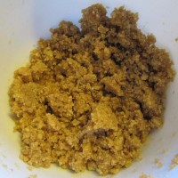 Kiksene kommes i en skål og hakkes/knuses fint f.eks. med en stor ske. Tilsæt sukker og mix let. Tilsæt smeltet smør lidt ad gangen og rør grundigt rundt indtil massen er ensartet og begynder at hænge godt sammen. Konsistensen er rigtig hvis du af massen kan forme en kugle med fingrene og den bliver ved med at hænge sammen.