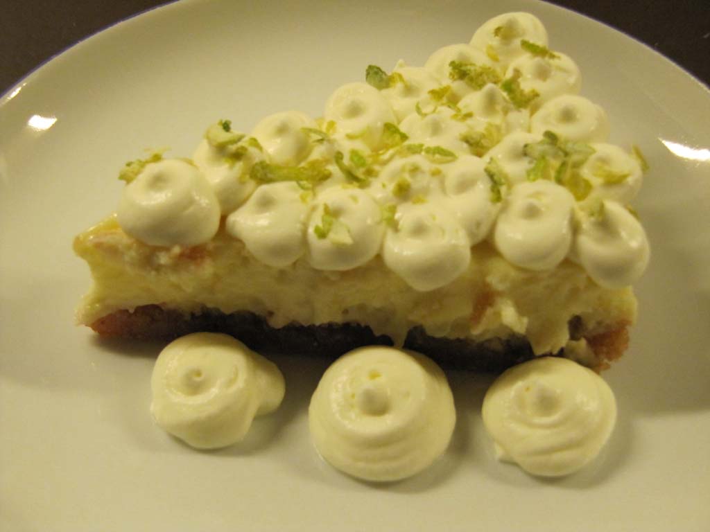 Kom æggeblommerne i en skål og pisk dem indtil de er lyse og luftige. Tilsæt langsomt en hel dåse sødet kondenseret mælk, mens der stadig piskes. Efter tilsætning af mælken bliver massen væsentlig mere tyktflydend. Pisk i ca. 3-5min så massen bliver mere luftig. Tilsæt revet limeskal og pisk ved laveste hastighed. Tilsæt langsomt og lidt ad gangen limejuice, mens der stadig piskes.